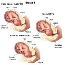 1.- Contractions every 5 minutes, lasting 30 to 40 minutes, dilatation of 5 cm.2.- Contractions every 4 minutes, lasting 40 to 45 seconds, dilatation of 6 cm.3.- Contractions every 2 or 3 minutes, lasting 45 to 50 seconds, dilatation of 8 cm.4.- Contractions every minute, lasting 1 minute, dilatation of 10 cm.